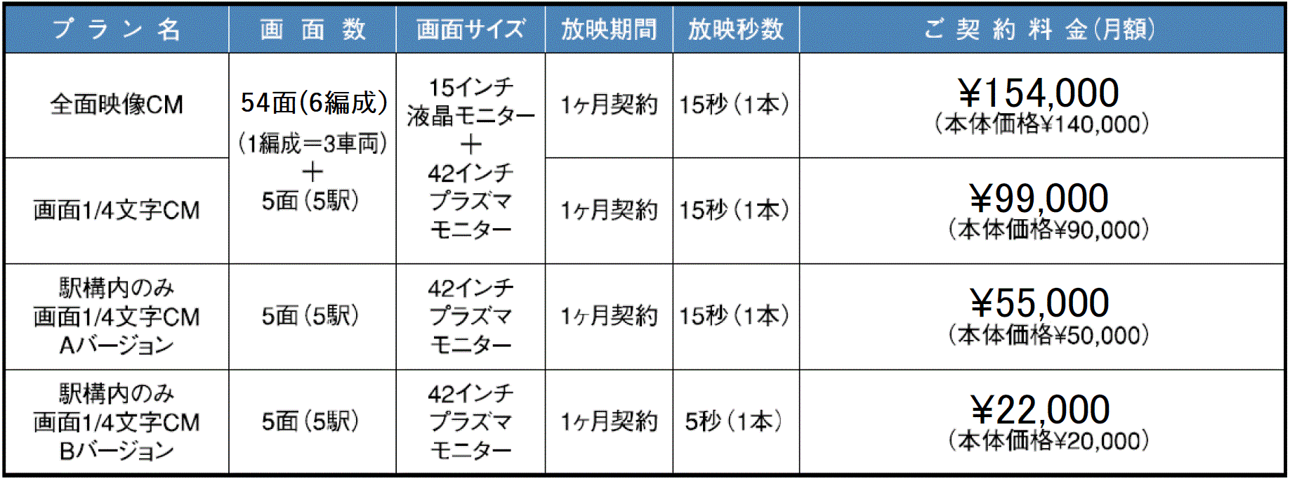 ●駅構内モニター設置駅は5駅、42インチモニター・5台です。